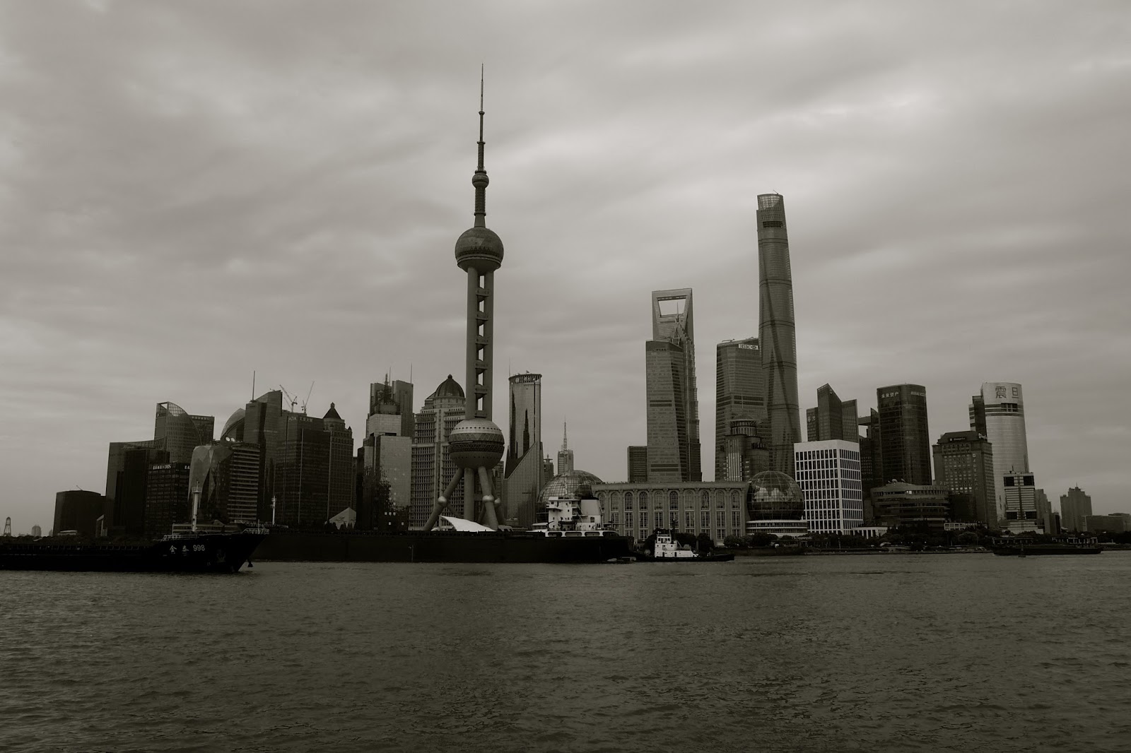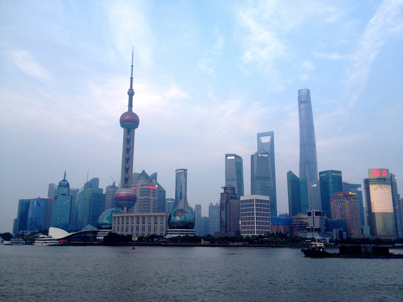 We are sat at a square corner table overlooking the Huangpu River that flows 113 kilometres through Shanghai. Yahoo tells me that it was formerly Westernised as Whangpoo. I GET THAT. There is a certain whiff here that is familiar to Westerners but perhaps not when walking the streets.