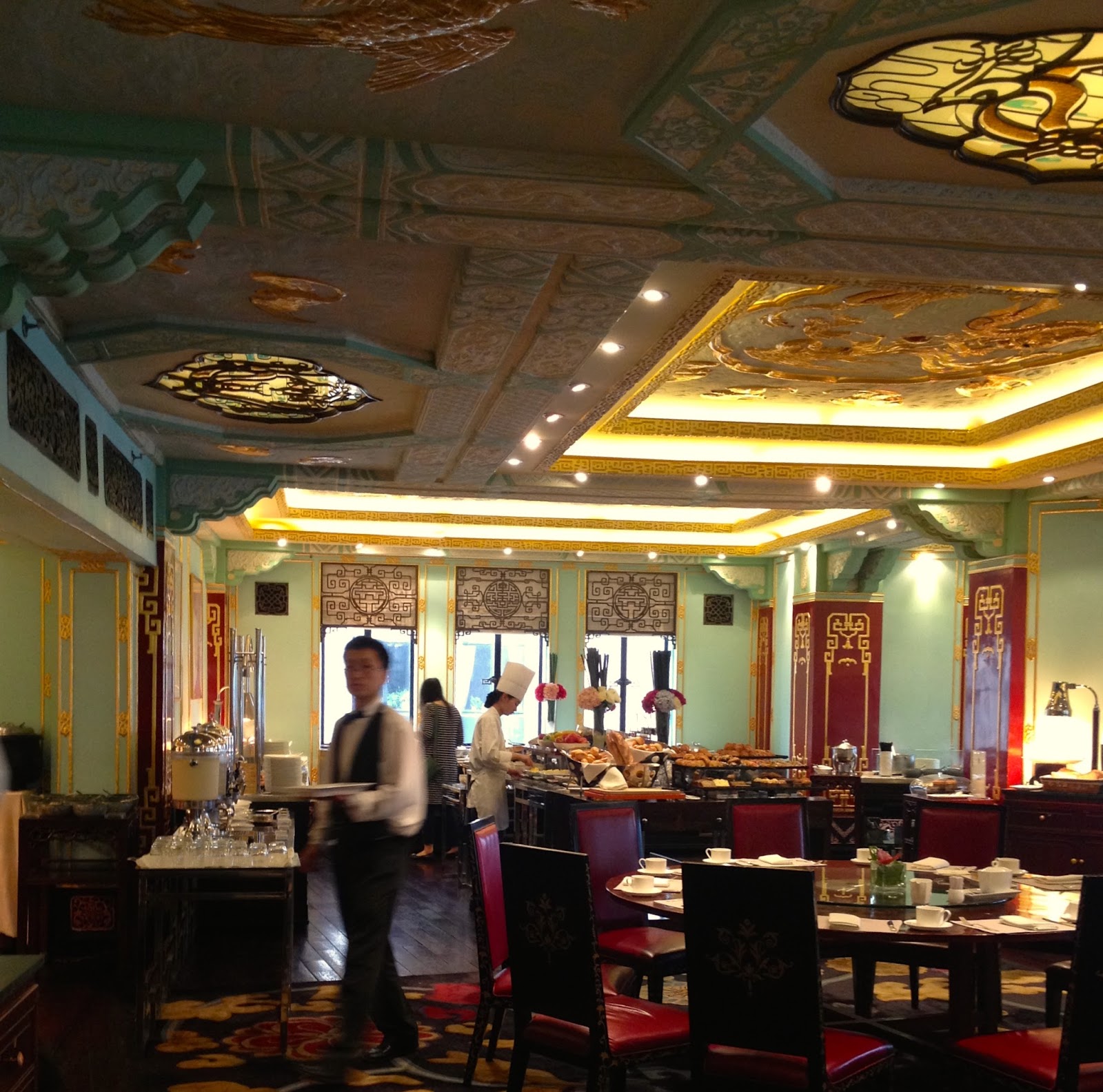Breakfast choices are wildly varying - Buns, cakes, pastries, breads, prawn crackers, pancakes, eggs (anyway you like them), oodles of noodles, curries, meats, cheeses, fruits, cold porridge, hot porridge, Shanghai breakfast, sushi, fish and did I say cereal? So, if like me, you are slightly over food after a long haul flight, cereal and fruit is the preferred first day choice. Check. And let’s be honest, oh my goodness, we only have 6 minutes in which to navigate our way to the various stations and choose something before it is is all whisked away.
