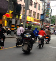 I would have liked to have assumed that this is to alert us passive pathway people that it may soon be okay to cross the road. I AM SO WRONG. It is in fact, an opportunity to spike the adrenaline levels of any road user - bus, car, moped, electric bike, lady with trolley, moped, bike, minivan and, oh, did I say moped yet? With this adrenaline rush, comes a KEEN SENSE to DRIVE straight at anyone or anything that has been STUPID ENOUGH to try to cross when the Little Green Man says we can. This is not Europe, baby. It is MUCH, MUCH, MUCH worse. There are 25million people in this city and I think that we met at least one quarter of them in the 2 hours it took us to traverse 7 streets of Shanghai. SERIOUSLY. I kid you not.